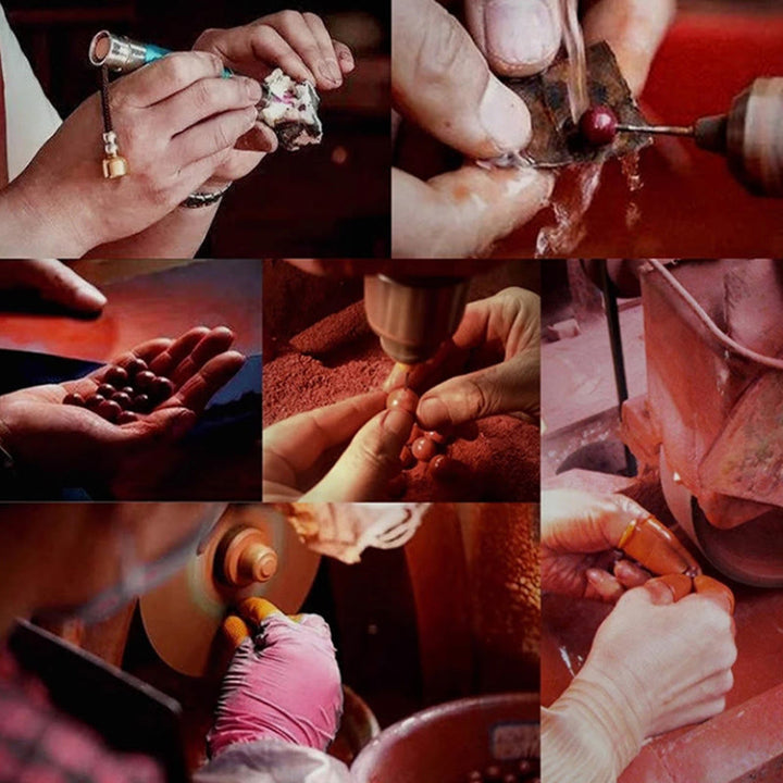 Nella cultura buddista, il cinabro viene spesso trasformato in rosari e perle di preghiera. Viene utilizzato quando si cantano le scritture buddiste. Può calmare la mente delle persone, calmare le loro menti, concentrare le loro menti e migliorare la loro saggezza. È una mascotte essenziale per coloro che adorano Buddha.