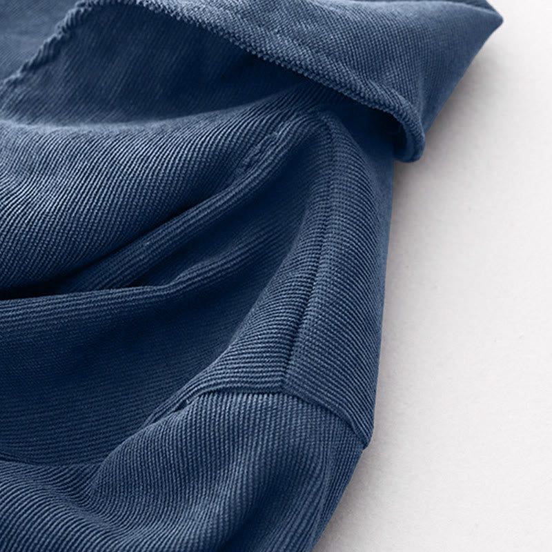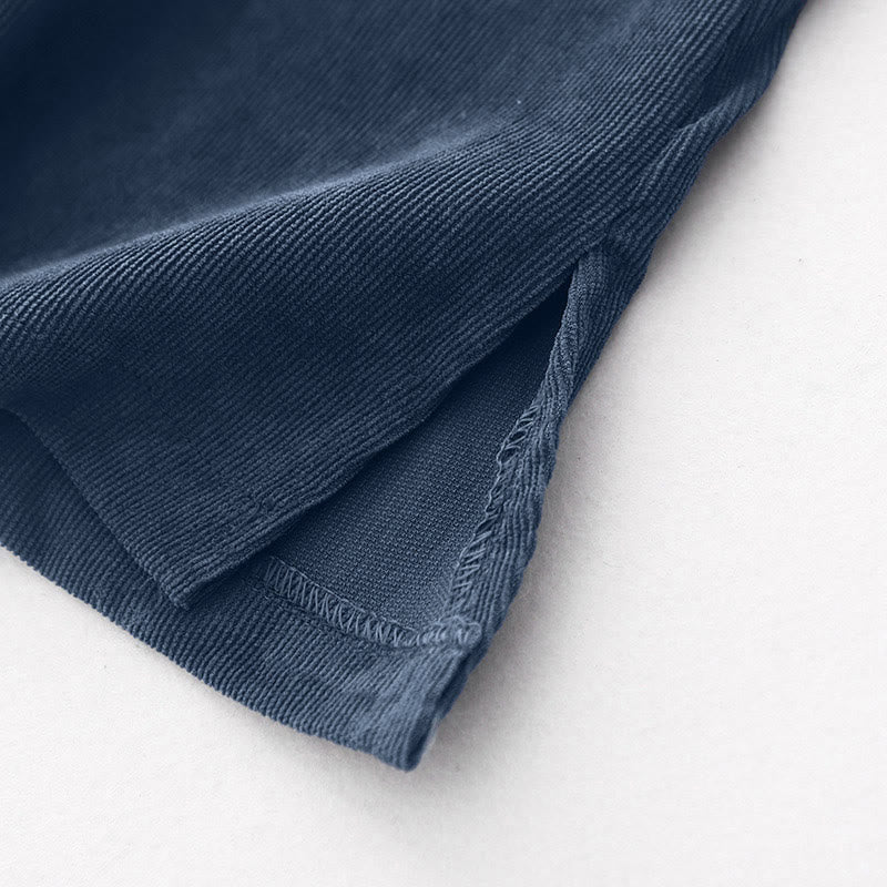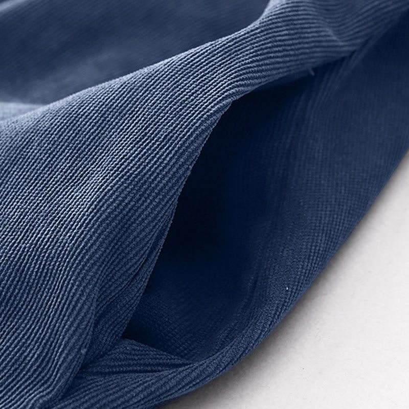 Abito midi in velluto a coste con maniche lunghe e tasche, motivo a bottoni semplici, motivo Buddha Stones Fall