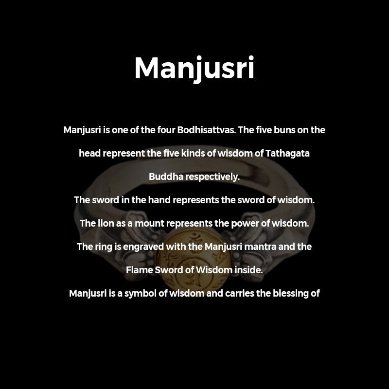 Anello regolabile Buddha Stones 925 Sterling Silver Manjusri Mantra Om Mani Padme Hum Peace
