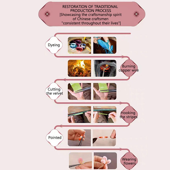 - Conservazione del patrimonio culturale : l'uso della tradizionale lavorazione artigianale dei fiori di velluto evidenzia l'importanza di preservare il patrimonio culturale e le competenze artigianali. Ciò mette in mostra la bellezza dell'artigianato fatto a mano, in particolare le tecniche intricate tramandate di generazione in generazione in regioni come Yangzhou.