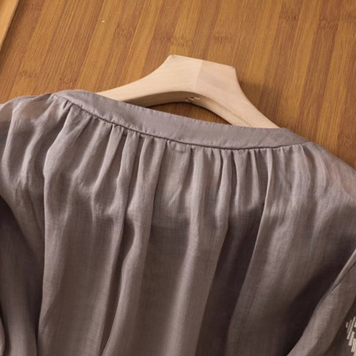 T-shirt casual da donna con scollo a giro, manica corta, in spandex, con ricamo simmetrico Buddha Stones