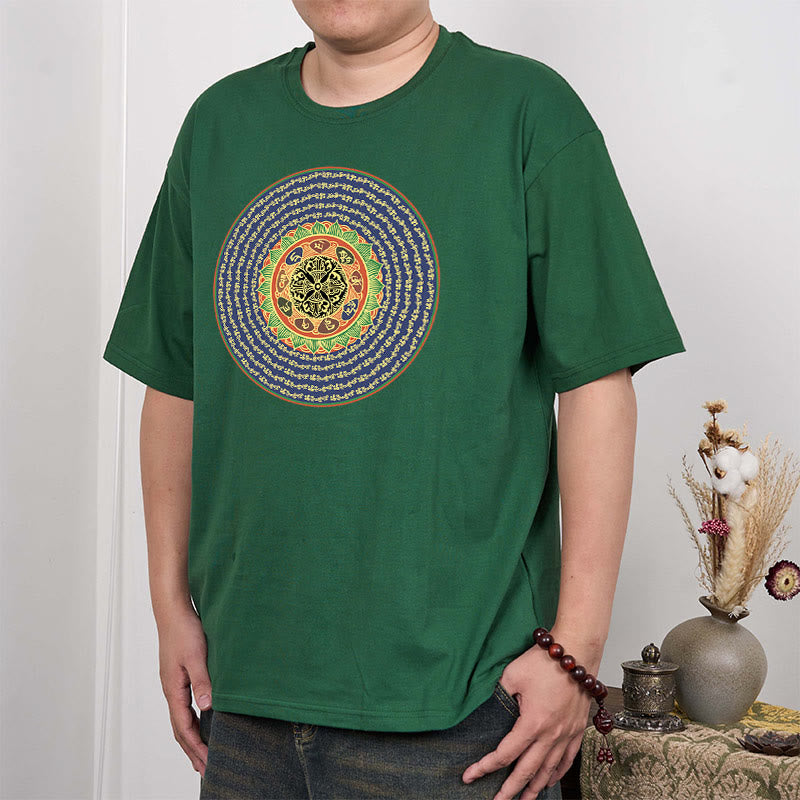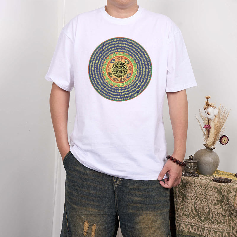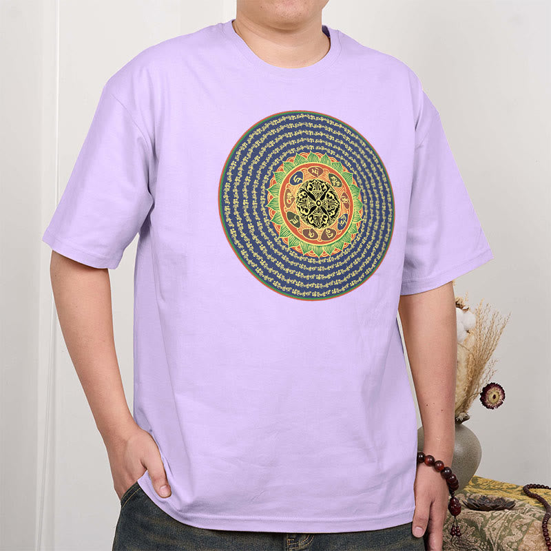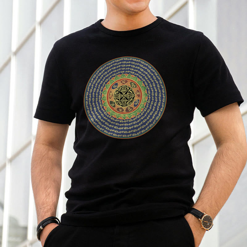 Un mala su una maglietta! Con 108 ripetizioni del mantra "Om Mani Padme Hum". Il numero 108 rappresenta i grani di un mala, usati per cantare un mantra. Proteggiti con questo potente mantra!