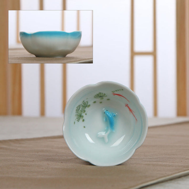 Tazza da tè Kung Fu con mano di loto e pesce koi in Buddha Stones
