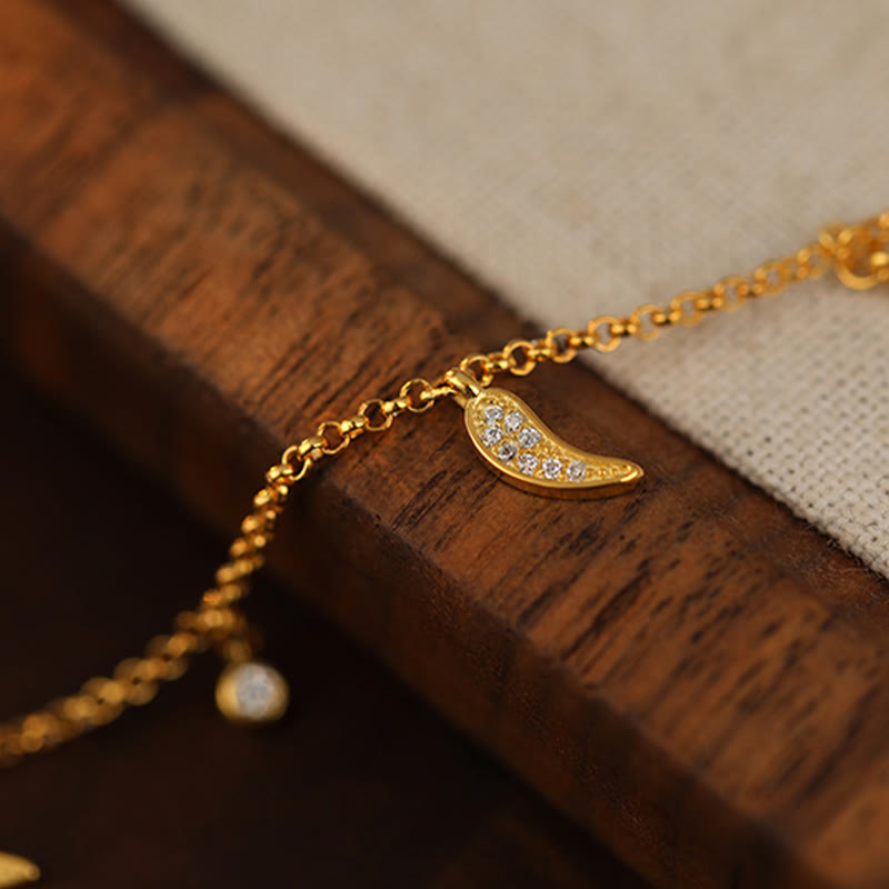 Buddha Stones 925 Sterling Silver Zircone Piccolo Pepe Ciondolo Protezione Cavigliera - Cavigliera in oro (circonferenza 25 cm) - image 0