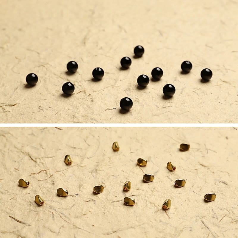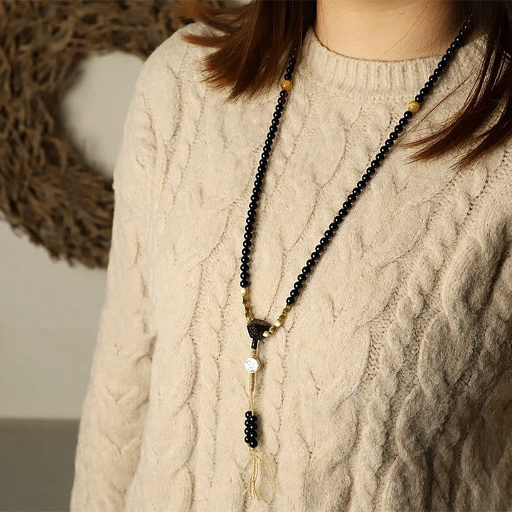 - Materiale: onice nero, perlina Dzi a tre occhi, legno di ebano, occhio di tigre, rame, argento sterling