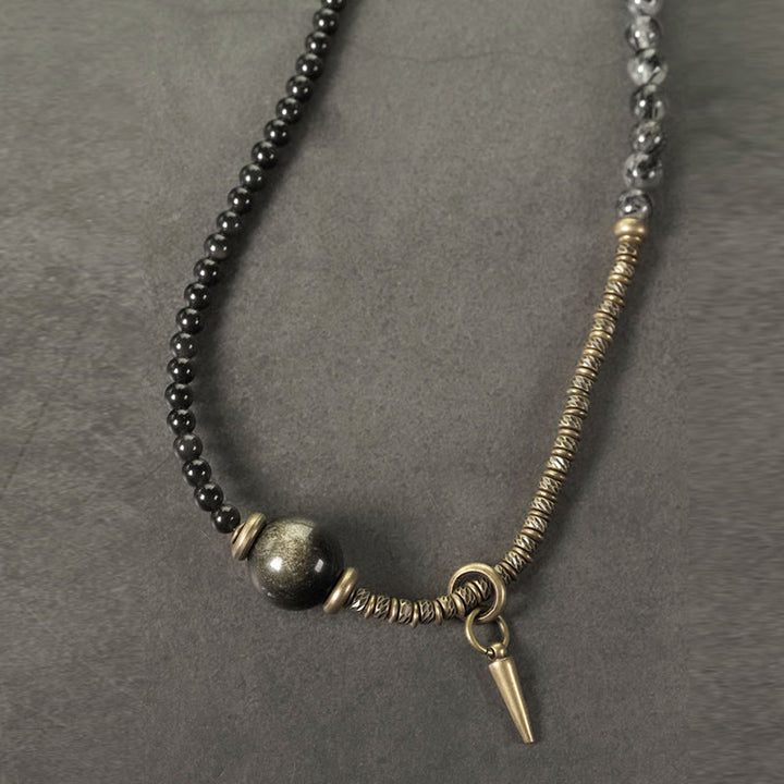 - Materiale: ossidiana dorata, quarzo rutilato nero, ottone