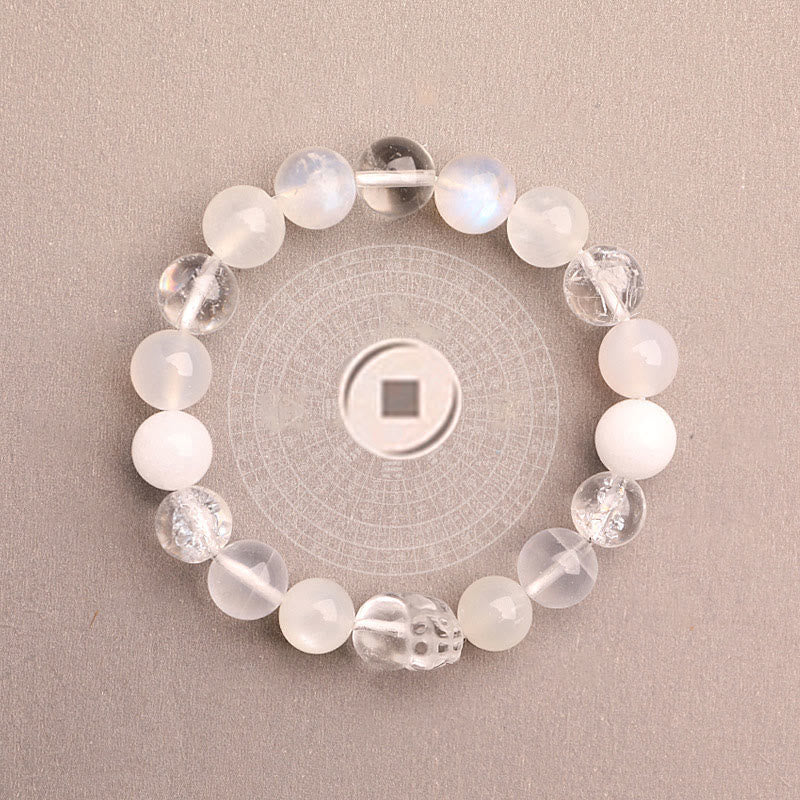 - Materiali: Occhio di tigre verde, Agata verde, Quarzo fragola verde, Phantom verde, Agata Alashan, Malachite, Giada, Agata muschiata, Calcedonio verde, Fluorite verde, Prehnite, Acquamarina, Quarzo rutilato nero, Ossidiana argentata, Occhio di tigre blu, Quarzo fumé, Cristallo Super Seven, Onice nero, Pietra di luna, Pixiu ossidiana dorata, Agata rossa, Pietra del sole, Agata Yanyuan, Quarzo ematoide rosso, Quarzo rosa, Agata venata di drago, Quarzo fragola, Cinabro, Agata rossa del sud, Citrino, Quarzo rutilato, Realgar, Quarzo ematoide giallo, Agata gialla, Giada gialla, Occhio di tigre, Azeztulite, Cristallo bianco, Cristallo dell'Himalaya, Pietra di luna, Phantom bianco, Quarzo pelo di coniglio, Pixiu cristallo bianco, Giada bianca, Agata bianca, Ossidiana dorata