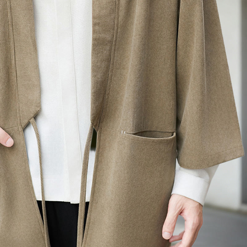 Giacca in velluto a coste a maniche lunghe con apertura frontale e tinta unita Buddha Stones, camicia kimono in cotone e lino da uomo - image 11