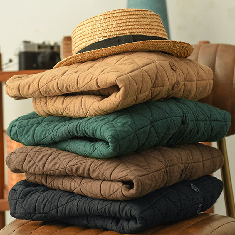 Giacca termica invernale da donna con maniche lunghe e motivo a rombi in cotone Buddha Stones, con tasche