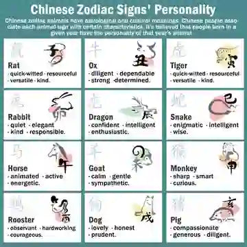 Gli animali dello zodiaco cinese hanno significati astrologici e culturali. I cinesi associano ogni segno animale a determinate caratteristiche. Si ritiene che le persone nate in un dato anno abbiano la personalità dell'animale di quell'anno.