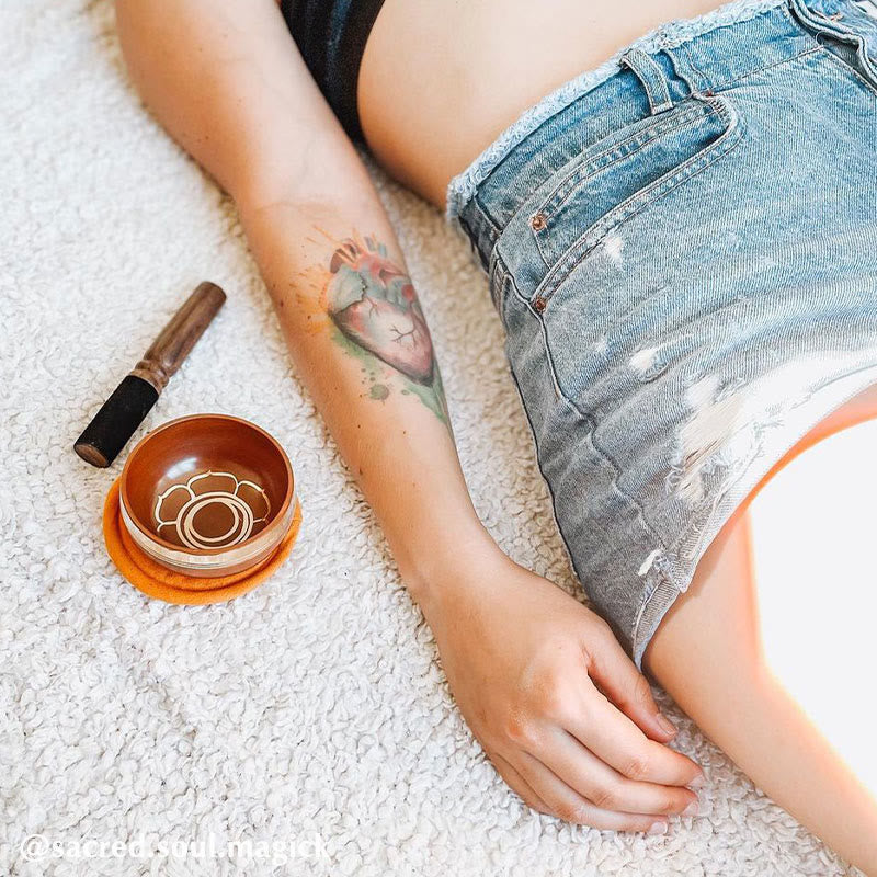 - Batti la ciotola con il nostro percussore di legno sul bordo o sul corpo della ciotola