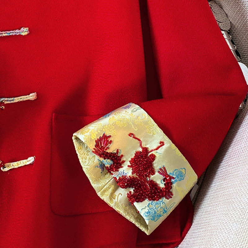 Giacca da donna in cotone a maniche lunghe con tasche, ricamo invernale con bottoni Buddha Stones - Cremisi - US6, UK/AU10, EU38 (XL) - image 0