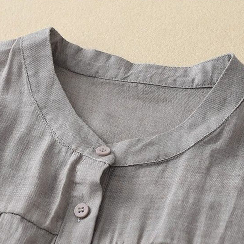 Buddha Stones Camicia da donna con maniche a tre quarti, scollo rotondo e bottoni semplici