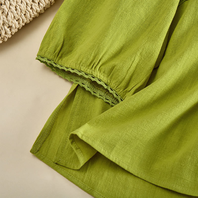 Buddha Stones Camicia da donna in cotone a maniche lunghe con scollo rotondo e bottoni a rana - GialloVerde - US8-10, UK/AU12-14, EU40-42 (2XL) - image 0