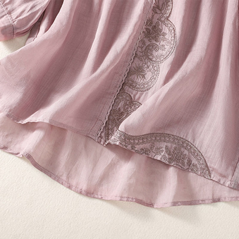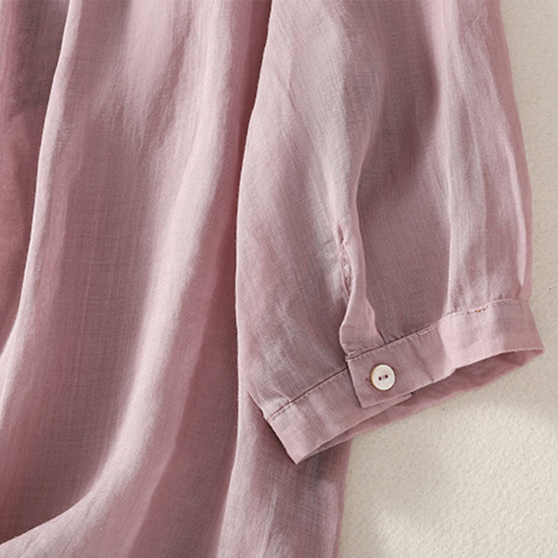 T-shirt casual da donna in cotone e lino con maniche corte, motivo ricamato con Buddha Stones scollo a V - image 12