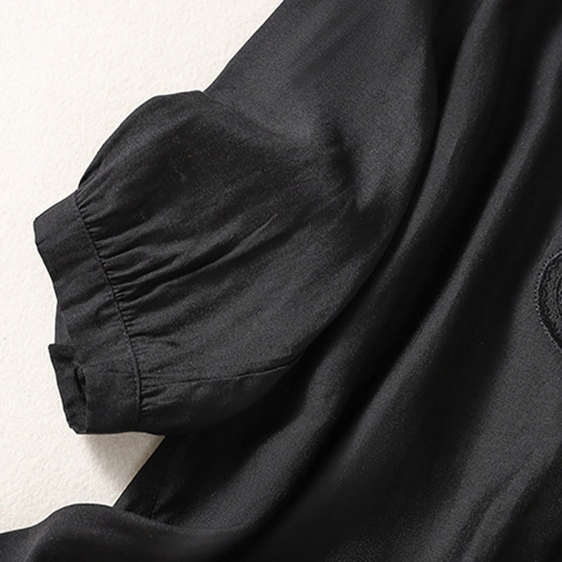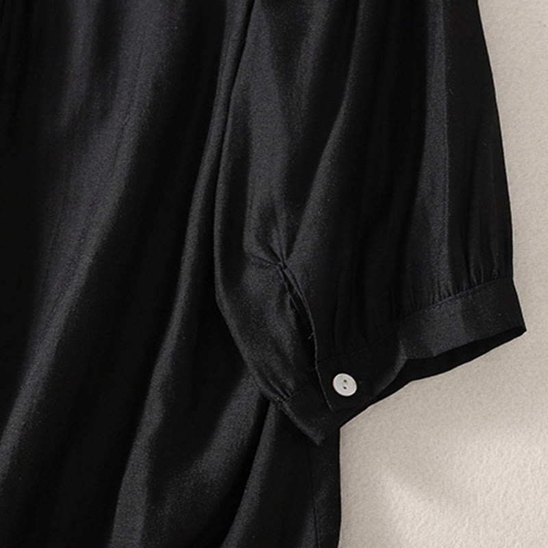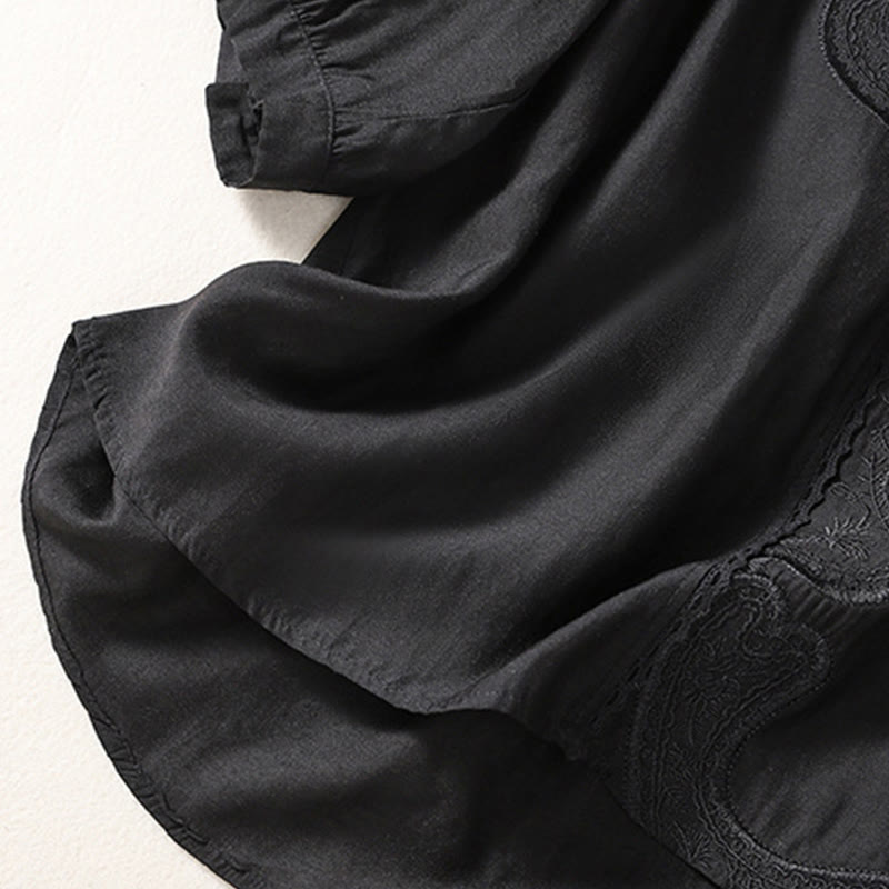 T-shirt casual da donna in cotone e lino con maniche corte, motivo ricamato con Buddha Stones scollo a V - Nero - US14, UK/AU18, EU46 (2XL) - image 5