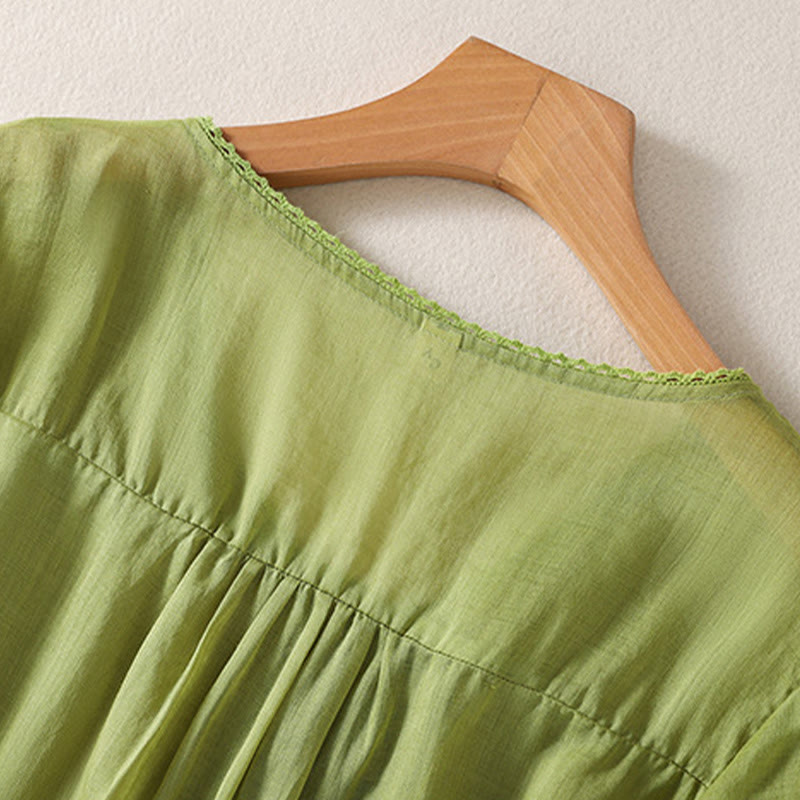 T-shirt casual da donna in cotone e lino con maniche corte, motivo ricamato con Buddha Stones scollo a V - GialloVerde - US14, UK/AU18, EU46 (2XL) - image 13