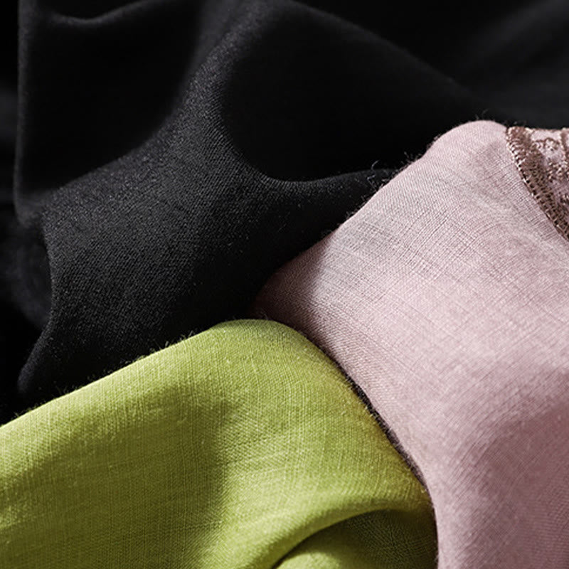 T-shirt casual da donna in cotone e lino con maniche corte, motivo ricamato con Buddha Stones scollo a V - image 17