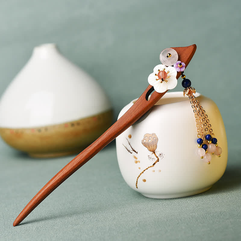 Le forcine per capelli di Buddha Stones sono realizzate con materiali come la giada bianca di Hetian, il legno di ebano, il legno di sandalo rosso e cristalli curativi. Queste forcine per capelli incorporano disegni simbolici come fiori e farfalle, promuovendo serenità, equilibrio e benessere spirituale. Ogni forcina per capelli realizzata a mano combina elementi naturali e simboli significativi, offrendo un senso di pace, armonia ed eleganza squisita.