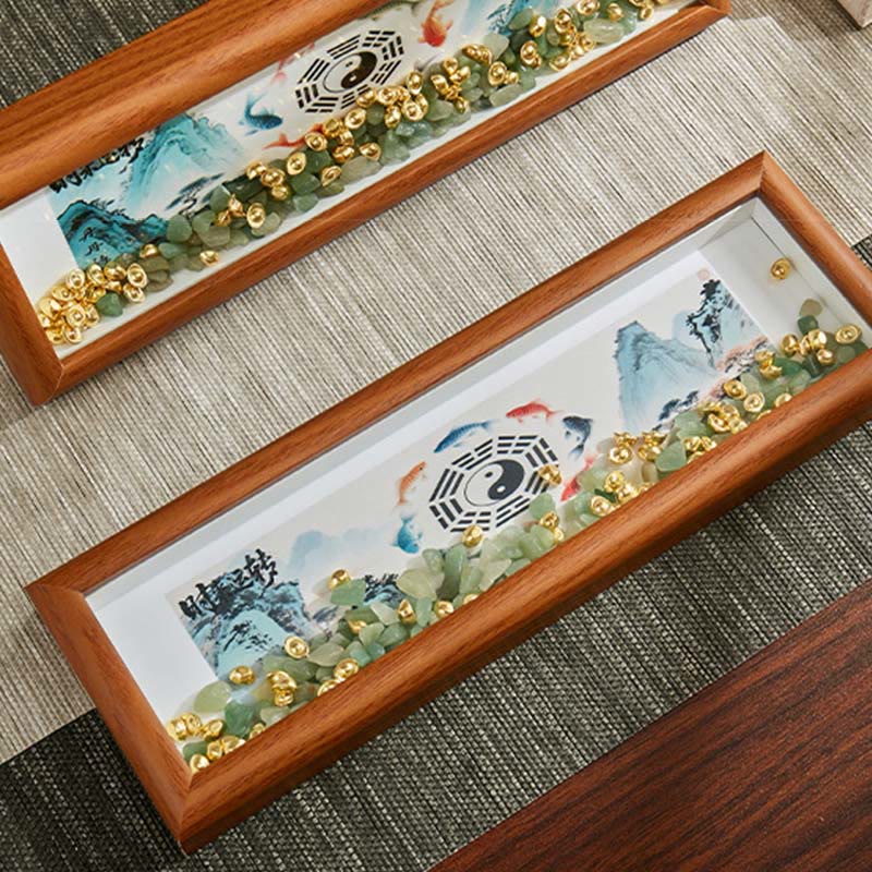 Il pesce è uno dei simboli di buona fortuna più utilizzati nel Feng Shui, in quanto la parola cinese "pesce" (Yu) suona come "surplus", e rappresenta un'abbondanza di fortuna. Inoltre, il pesce appartiene all'elemento acqua e, nella credenza cinese, l'acqua simboleggia anche ricchezza e prosperità. Oltre a ciò, la carpa koi è anche un simbolo di successo e determinazione. La carpa koi è inoltre legata al simbolo dello yin yang. Infatti, si dice che le lacrime bianche e nere del simbolo dello yin yang rappresentino due carpe koi, una maschio e una femmina. Pertanto, una coppia di carpe koi è spesso usata come simbolo di buona fortuna per un matrimonio felice.