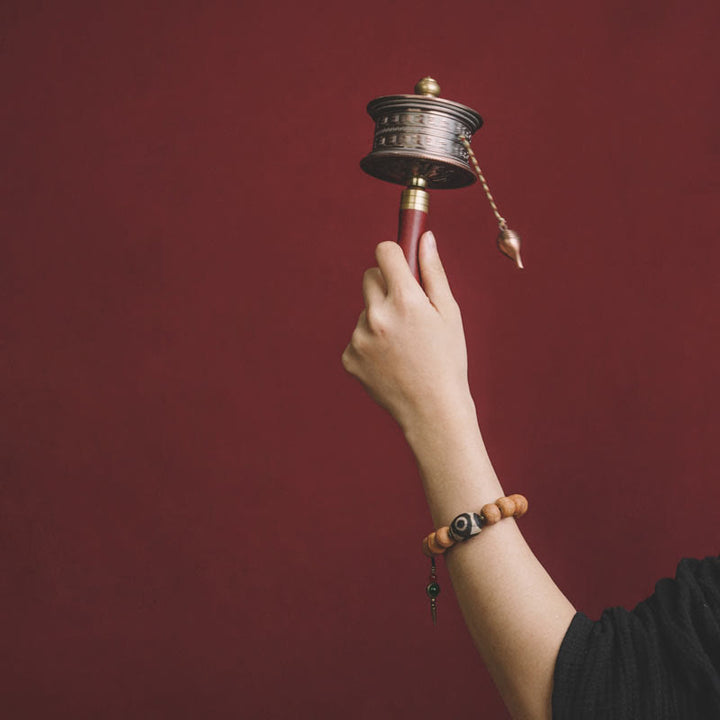 - Materiale: semi di Bodhi, perle Dzi (dipinte a mano) , rame, giada