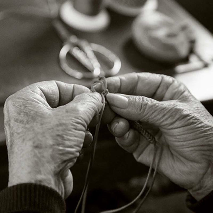 - Materiale: corda, fibbia in lega, fibbia in argento 925