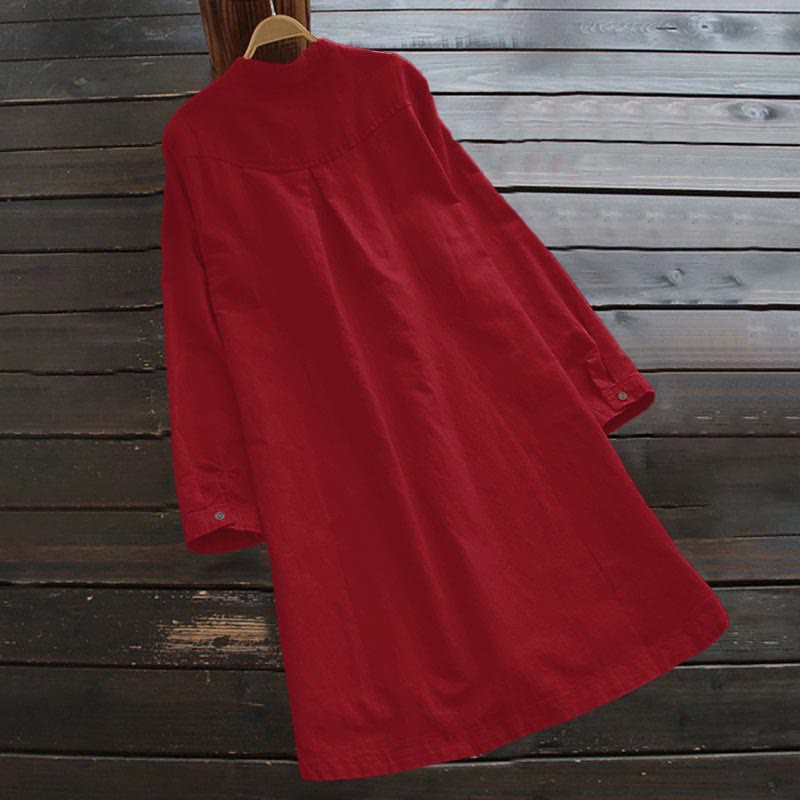 Camicia da donna a maniche lunghe con tasche e bottoni in tinta unita Buddha Stones - Rosso - US16, UK/AU20, EU48 (5XL) - image 17