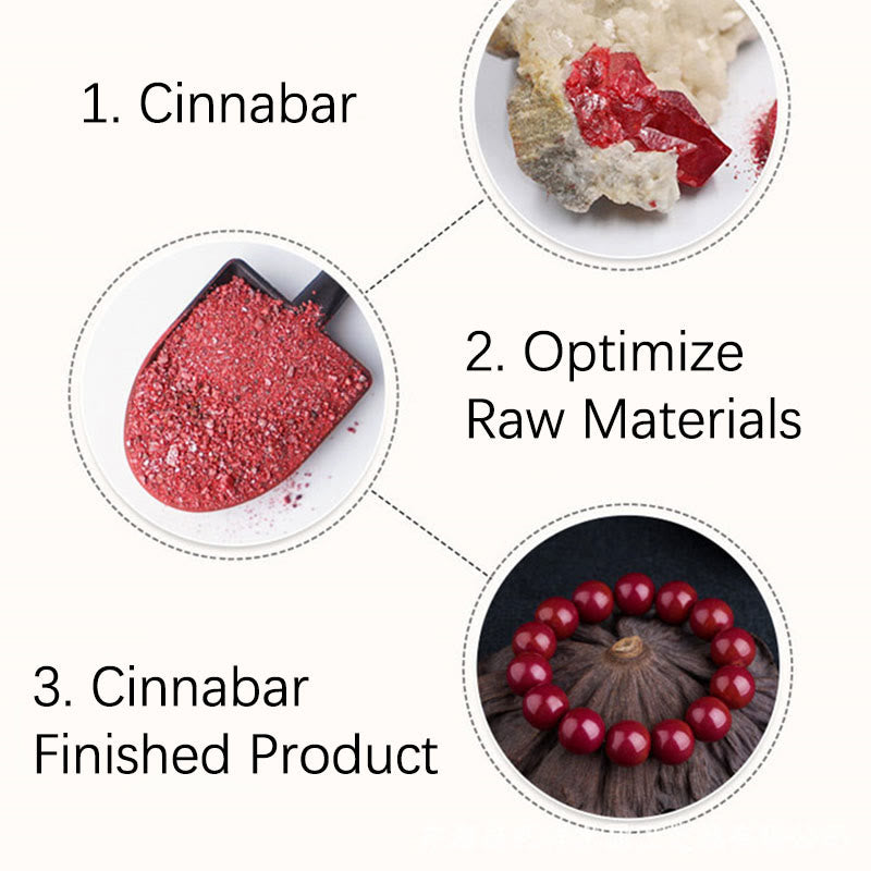 Nella cultura buddista, il cinabro viene spesso trasformato in rosari e perle di preghiera. Viene utilizzato quando si cantano le scritture buddiste. Può calmare la mente delle persone, calmare le loro menti, concentrare le loro menti e migliorare la loro saggezza. È una mascotte essenziale per coloro che adorano Buddha.