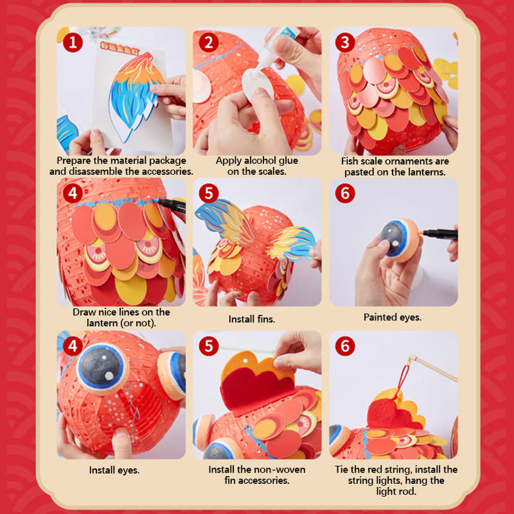 Fasi di assemblaggio fai da te della lanterna portafortuna a forma di pesce koi