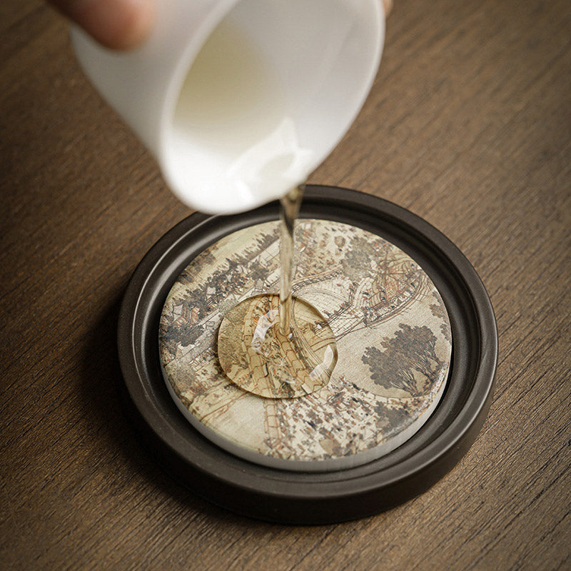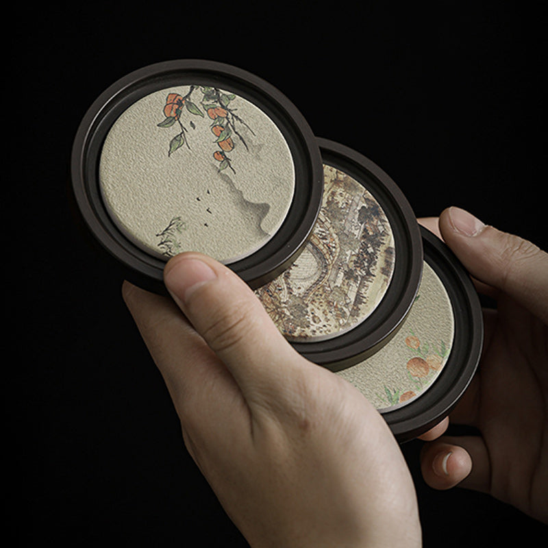 Buddha Stones Plum Blossom Peach Heart Sutra Nespolo Giapponese Magnolia Cachi Ceramic Cup Mat Pad Coaster Kung Fu Tea Mat