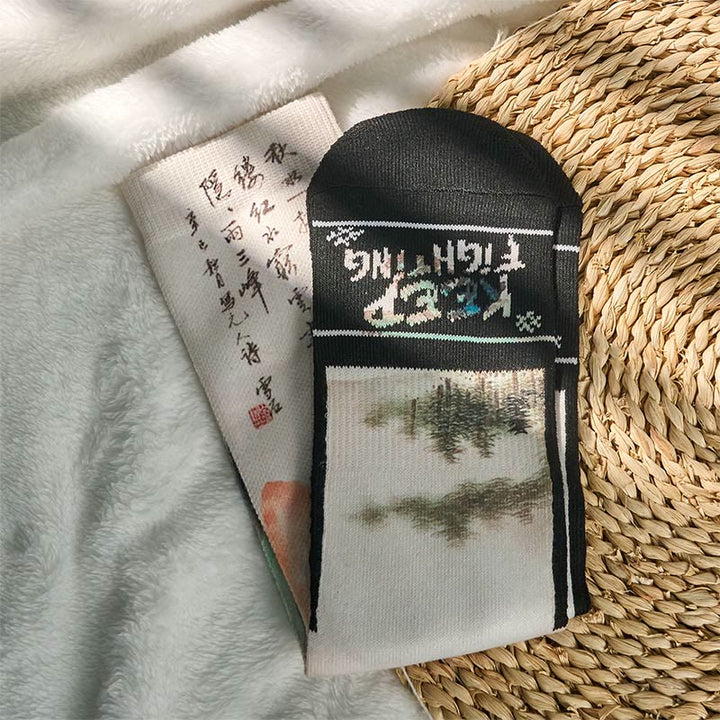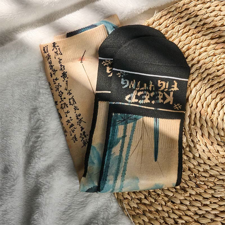 - Design artistico : ispirati alla tradizionale pittura paesaggistica cinese, questi calzini presentano eleganti pennellate a inchiostro che aggiungono un tocco di arte culturale al tuo abbigliamento quotidiano. Un grazioso loto dipinto a inchiostro simboleggia purezza e resilienza, fondendo bellezza e significato a ogni passo.