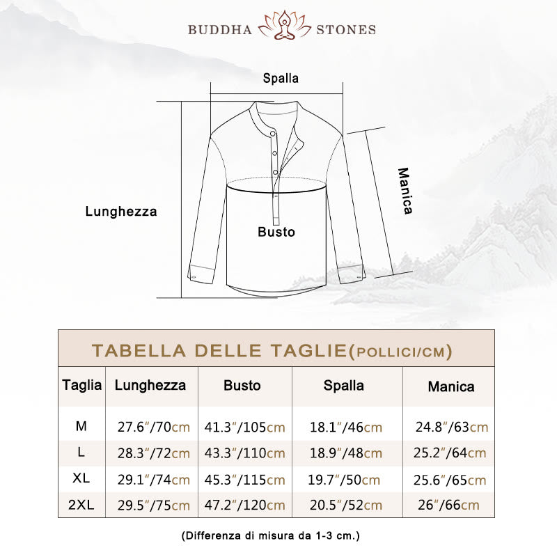 Camicia a Buddha Stones lunghe con bottoni a tinta unita in cotone e lino, abbigliamento maschile