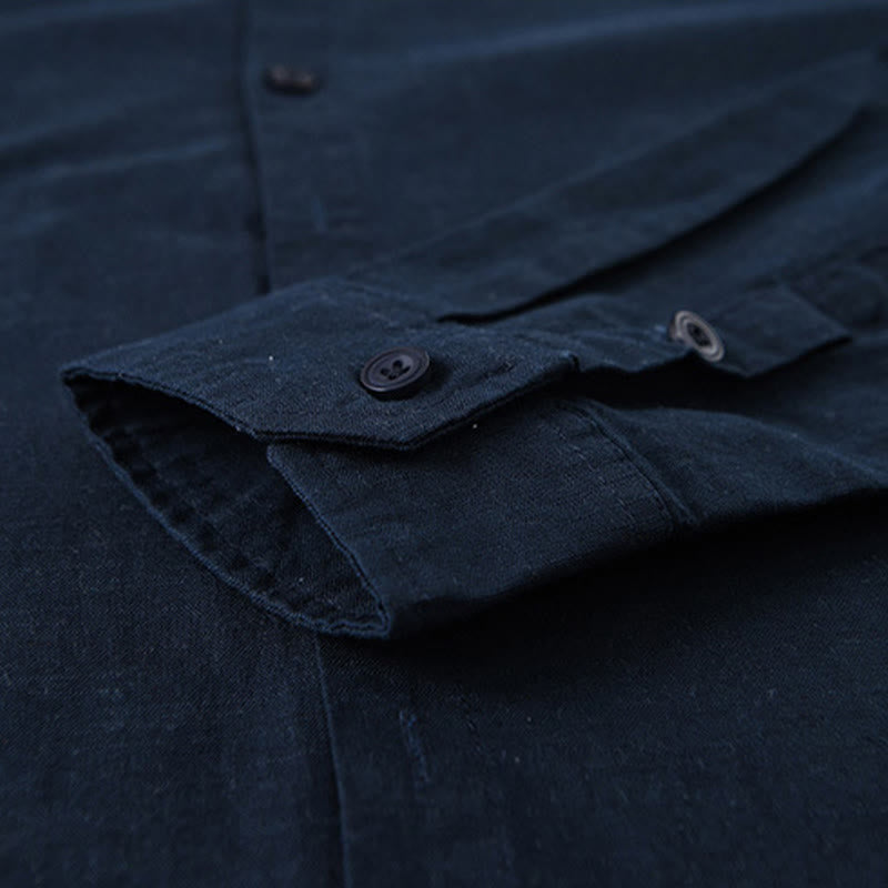 Camicia a maniche lunghe in cotone e lino con colletto rialzato, da uomo, modello Buddha Stones , primavera, colore puro - Blu notte - US/UK/AU42, EU52 (3XL) - image 0