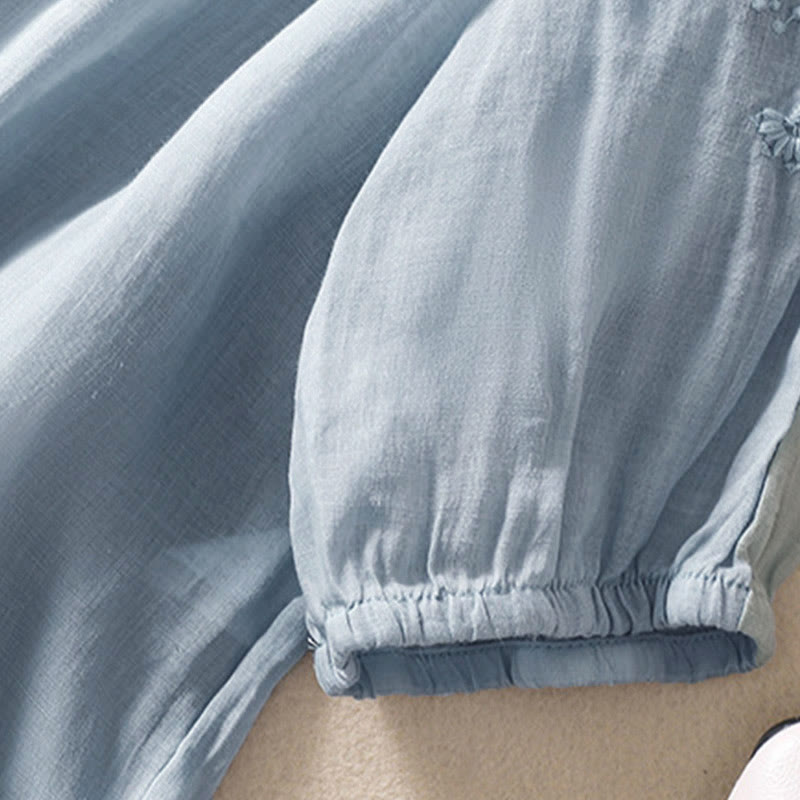 Camicia da donna a maniche corte con sbuffo, motivo floreale ricamato, motivo Buddha Stones, casual e semplice - Azzurro chiaro - US8-10, UK/AU12-14, EU40-42 (2XL) - image 0