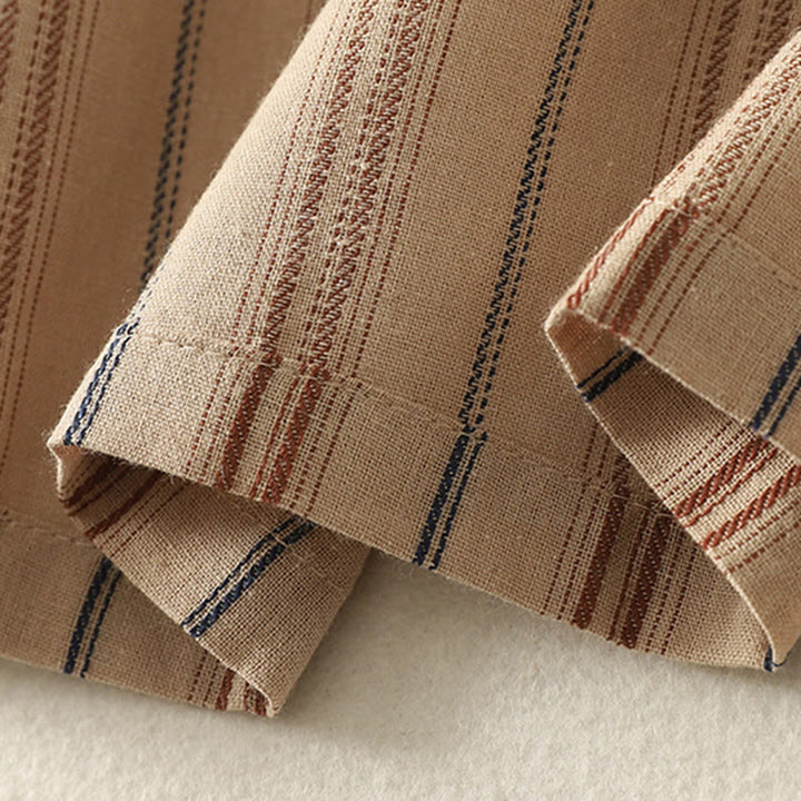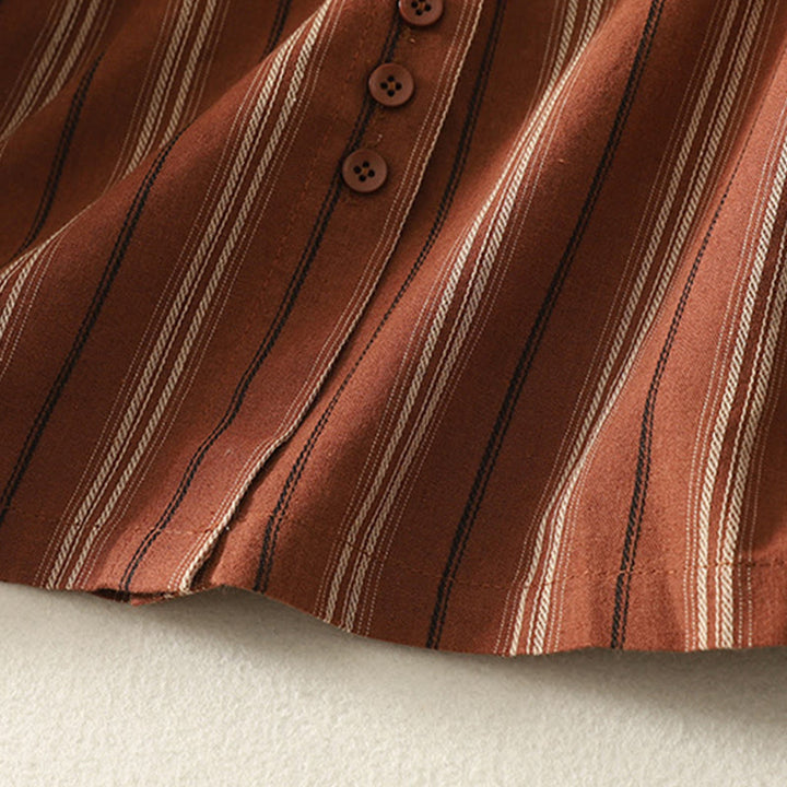 Camicia da donna in poliestere a maniche lunghe con strisce retrò casual Buddha Stones - BurlyWood - US12, UK/AU16, EU44 (2XL) - image 5