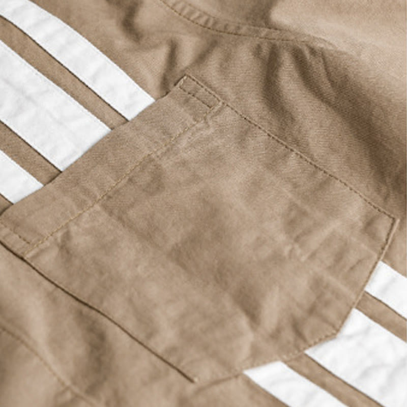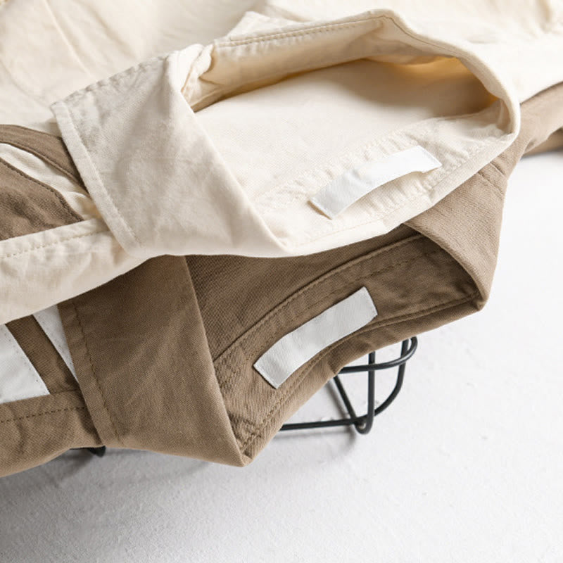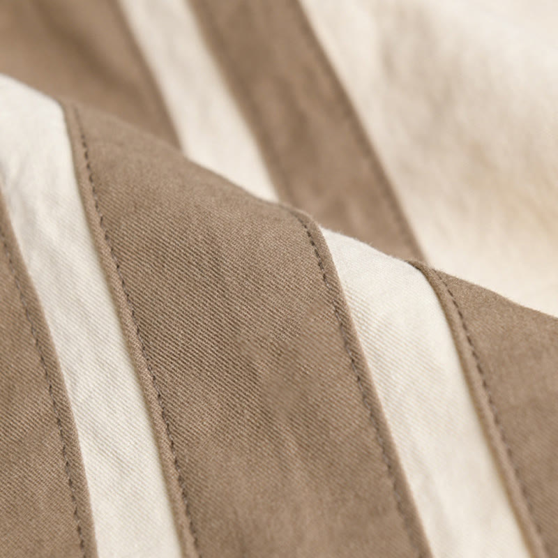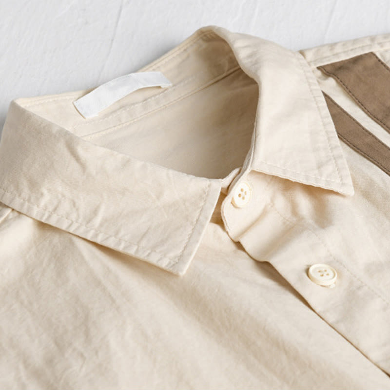 Camicia da uomo in cotone a maniche lunghe con risvolto autunnale, motivo patchwork a contrasto di colore, con tasca e Buddha Stones - Beige - US/UK/AU42, EU52 (3XL) - image 1