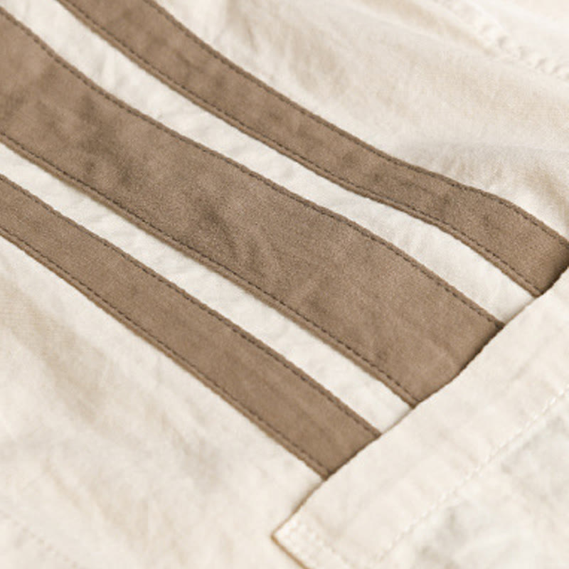 Camicia da uomo in cotone a maniche lunghe con risvolto autunnale, motivo patchwork a contrasto di colore, con tasca e Buddha Stones - image 10