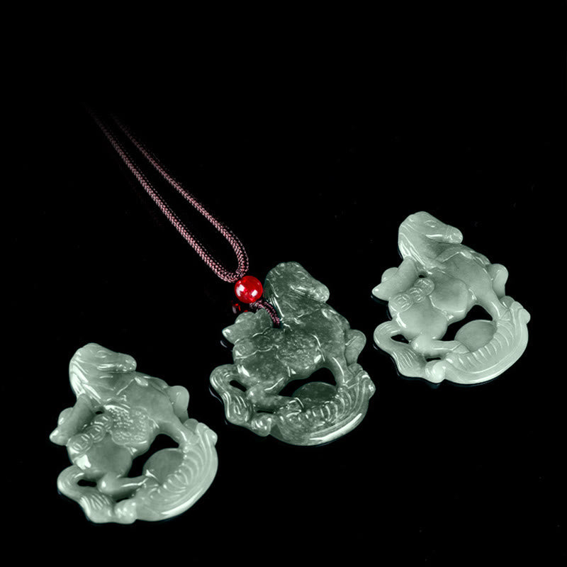 Collana con ciondolo in corda, lingotto di giada, Buddha Stones, anno del cavallo, fortuna e prosperità - Cavallo - image 0