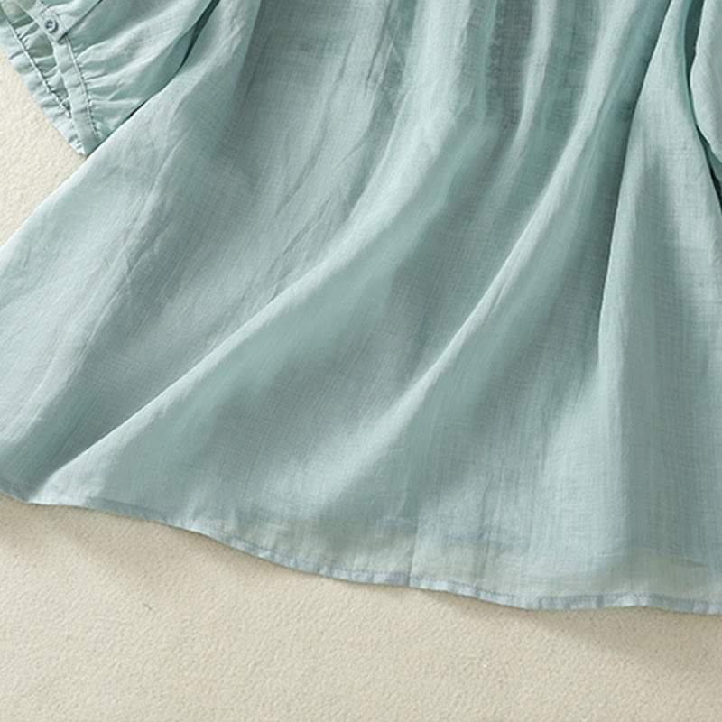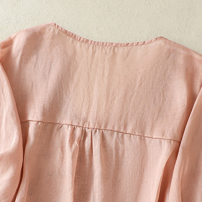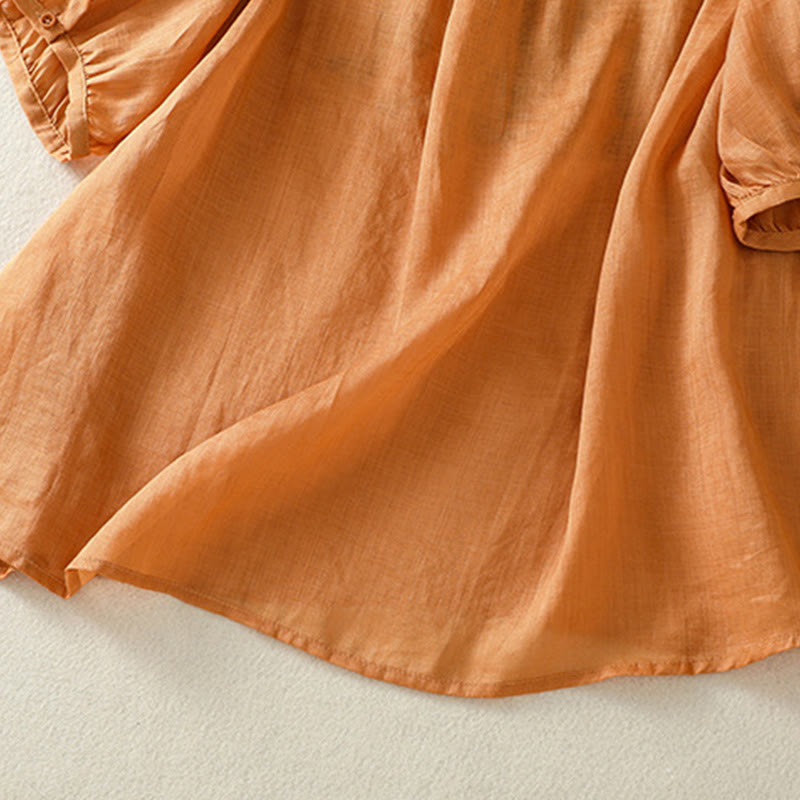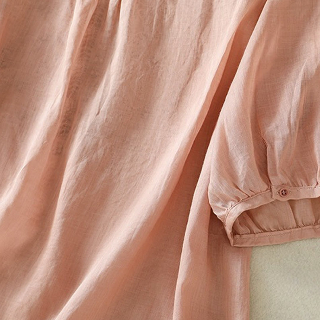 Maglietta casual da donna in cotone e lino con maniche corte, in pizzo ricamato con Buddha Stones - image 15