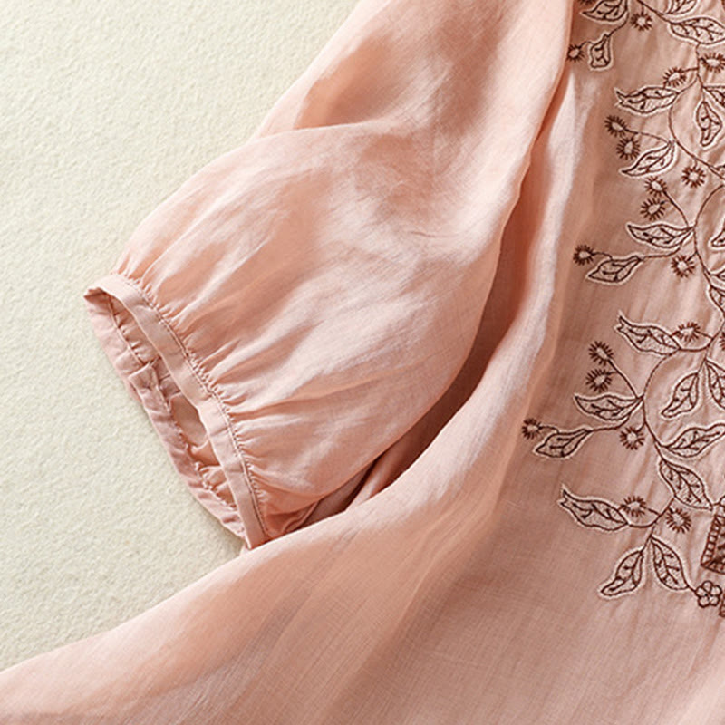 Maglietta casual da donna in cotone e lino con maniche corte, in pizzo ricamato con Buddha Stones - Rosa - US8-10, UK/AU12-14, EU40-42 (2XL) - image 20