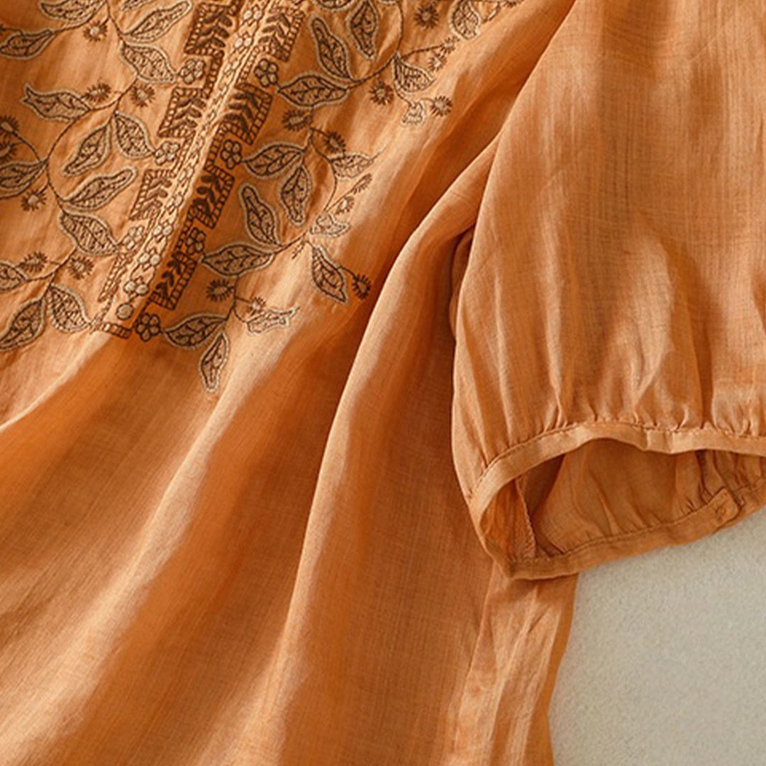 Maglietta casual da donna in cotone e lino con maniche corte, in pizzo ricamato con Buddha Stones - image 14