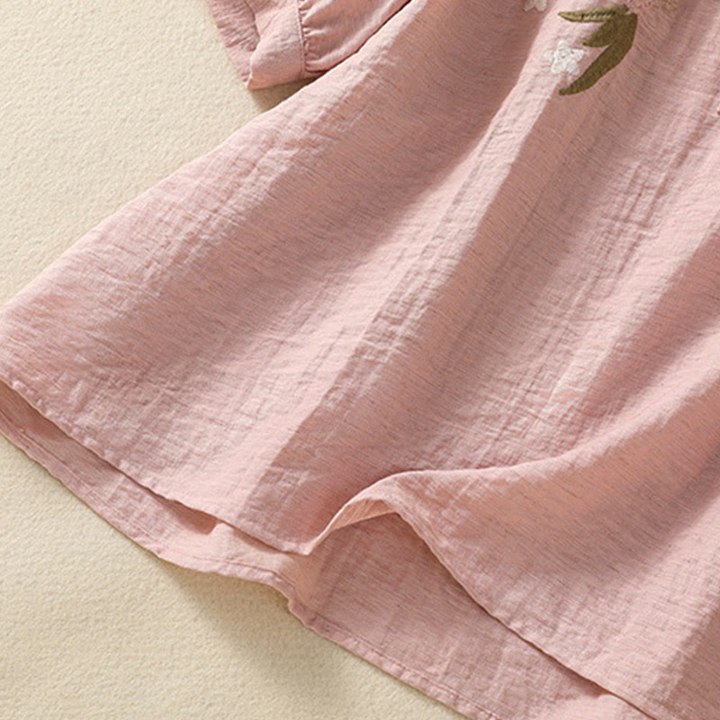 Maglietta da donna in cotone con scollo a V, ricamo Buddha Stones Flowers Leaves - Rosa - US14, UK/AU18, EU46 (2XL) - image 1