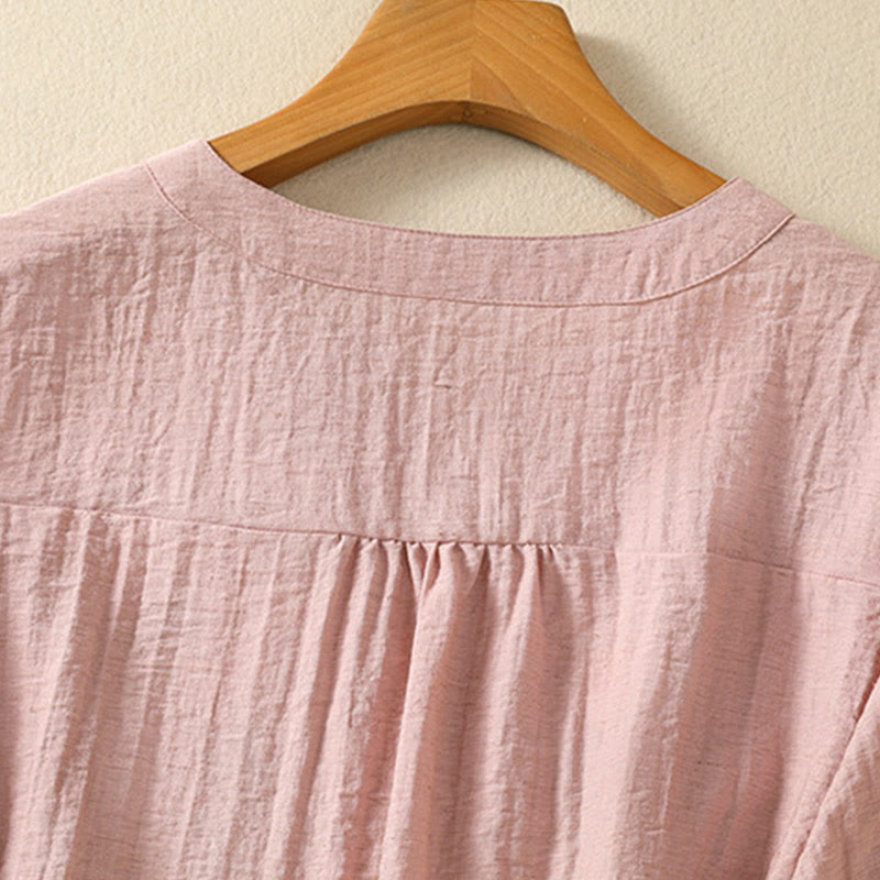 Maglietta da donna in cotone con scollo a V, ricamo Buddha Stones Flowers Leaves - image 15