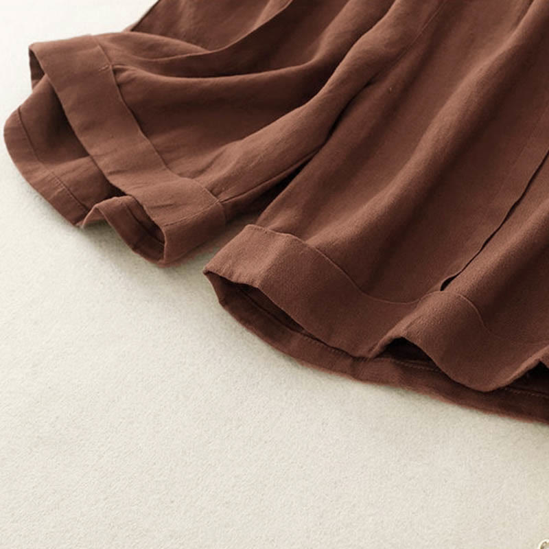 Pantaloncini da donna in cotone tinta unita casual Buddha Stones con tasche - Marrone sella - US12, UK/AU16, EU44 (4XL) - image 14