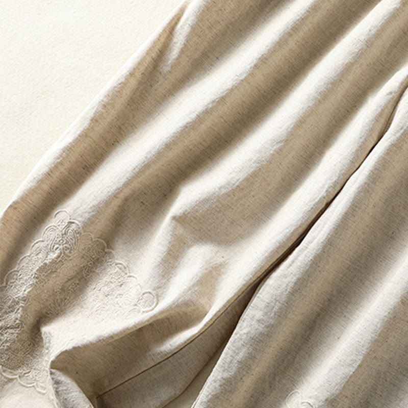Pantaloni harem da donna in cotone e lino con tasche, modello Paisley, stile vintage estivo e casual, con ricamo Buddha Stones
