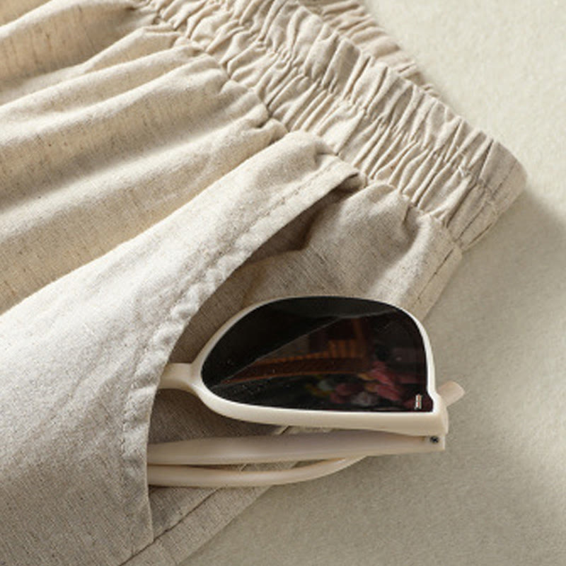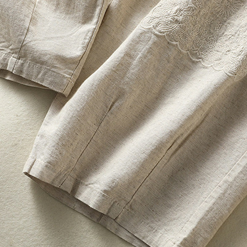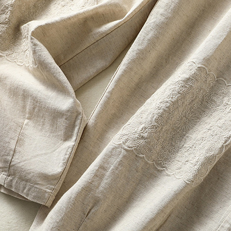 Pantaloni harem da donna in cotone e lino con tasche, modello Paisley, stile vintage estivo e casual, con ricamo Buddha Stones - image 1