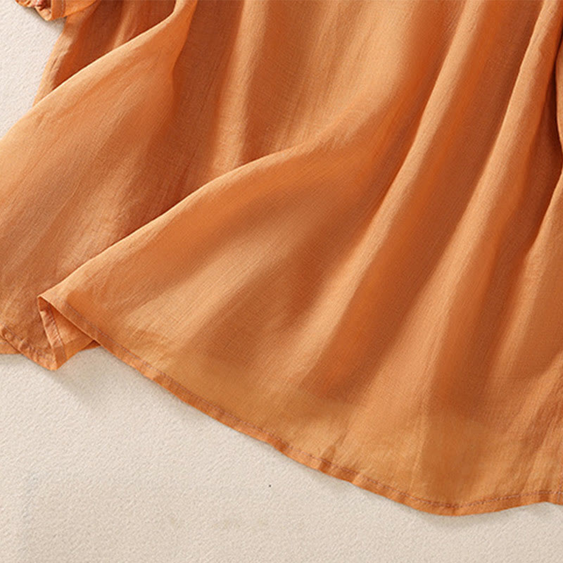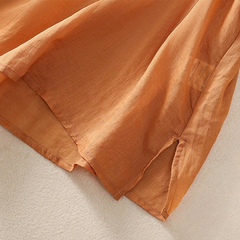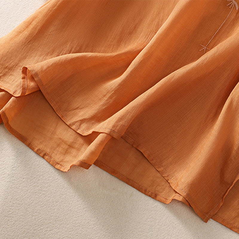 Maglietta da donna in cotone e lino con mezza manica, ricamo Buddha Stones, orlo floreale e spacco - Arancione scuro - US14, UK/AU18, EU46 (2XL) - image 10