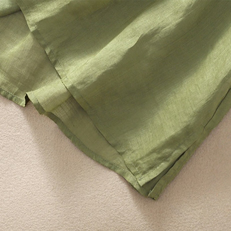 Maglietta da donna in cotone e lino con mezza manica, ricamo Buddha Stones, orlo floreale e spacco - image 21