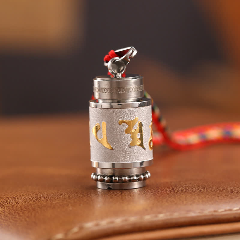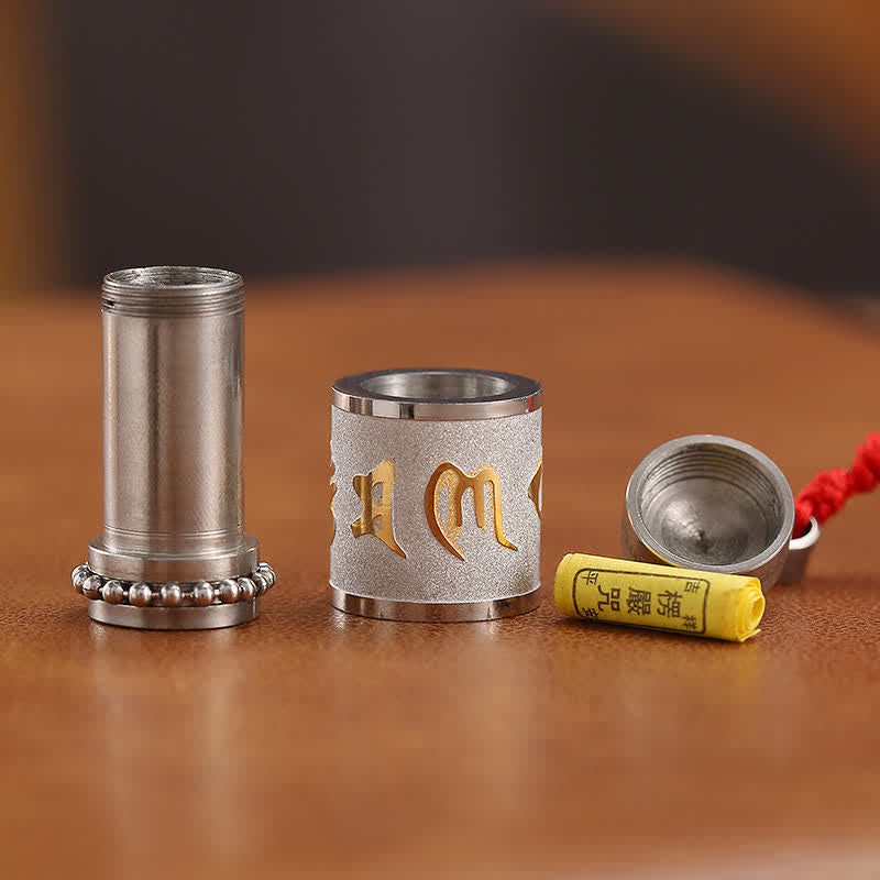 Buddha Stones Tibet Om Mani Padme Hum Shurangama Mantra Titanio Acciaio Saggezza Amuleto Collana Pendente - 1,2 cm*1,8 cm - Argento - Catena di perline e fili colorati - image 11