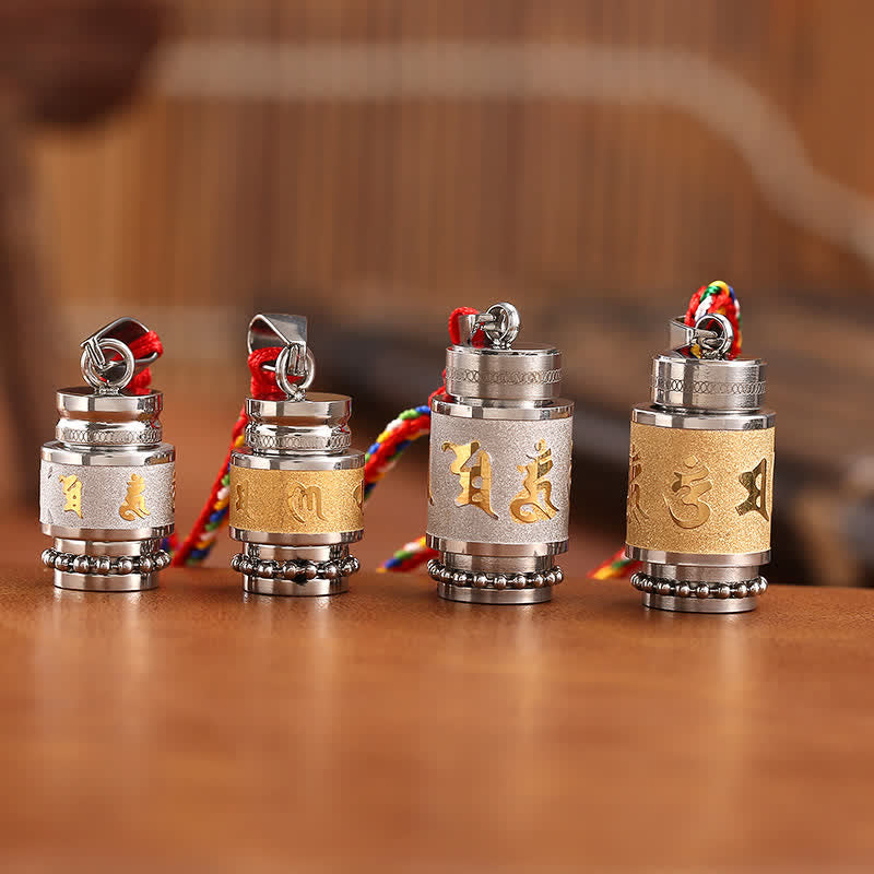 Buddha Stones Tibet Om Mani Padme Hum Shurangama Mantra Titanio Acciaio Saggezza Amuleto Collana Pendente